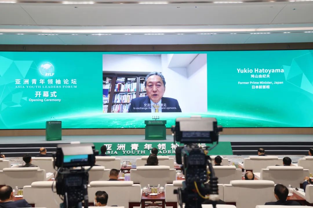 3月25日,在亚洲青年领袖论坛开幕式上,日本前首相鸠山由纪夫通过视频发表重要讲话。